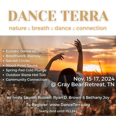 Join us for this special opportunity to go on a powerful breathwork journey within a 3-day retreat called Dance Terra, nestled within the pristine forests of Tennessee.